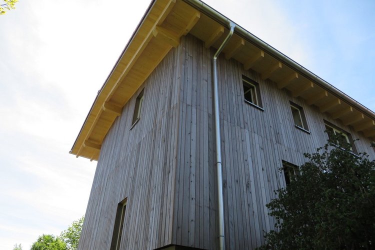 Fassadengestaltung mit grauem Holz